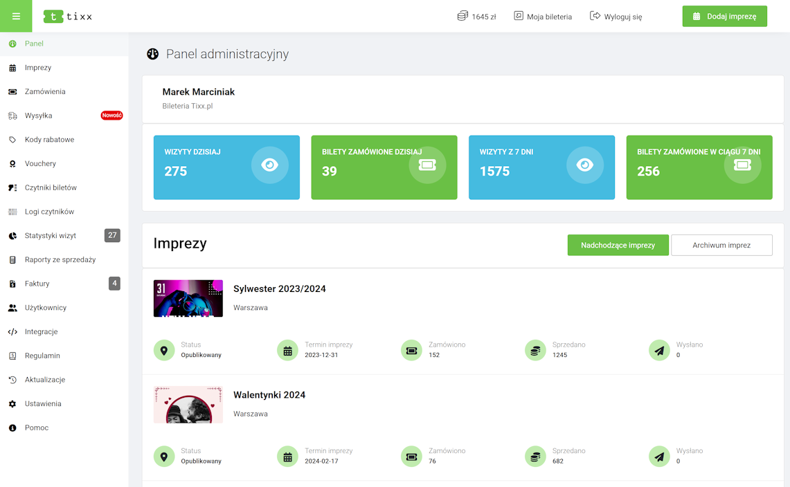 Funkcje bileterii Tixx.pl